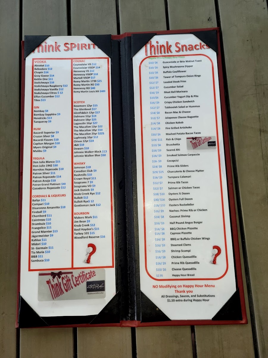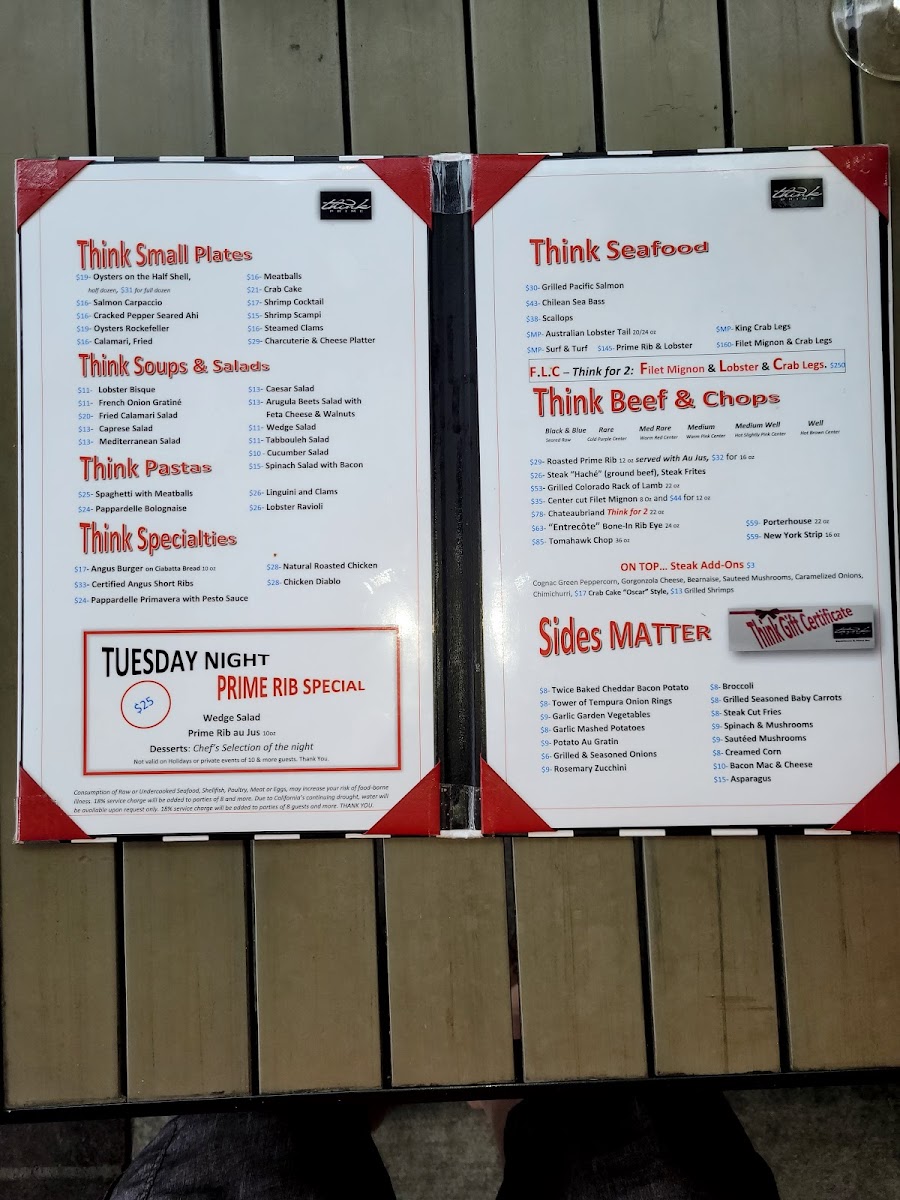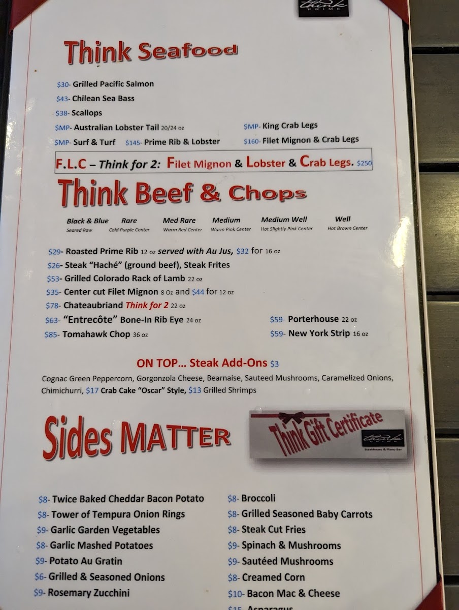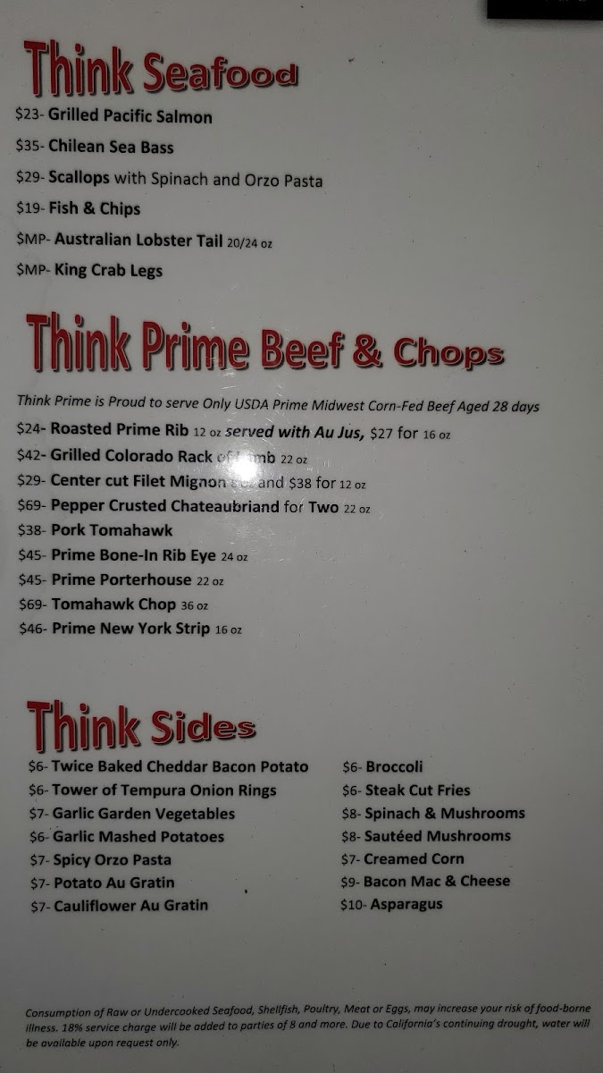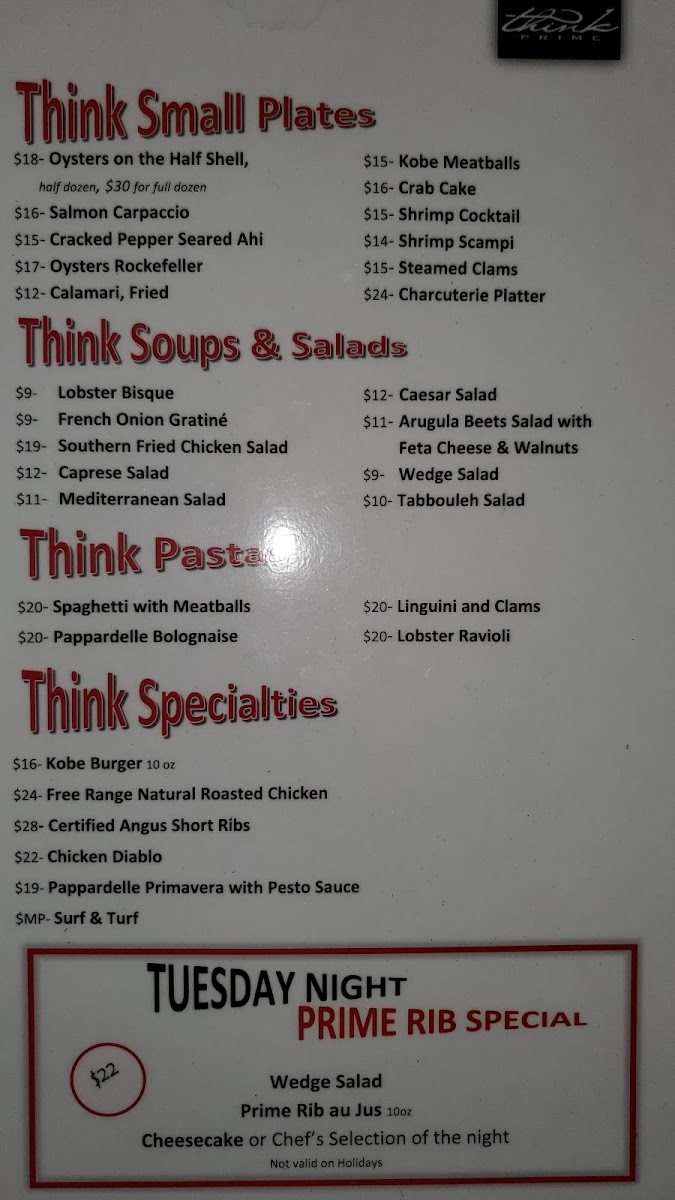 Think Prime Steak House Menu